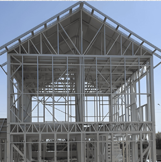 Naš projekat realizujemo pomoću pocinčanih čeličnih profila (za nosivu konstrukciju), čeličnih panela (za zidne obloge), izolacionih materijala (mineralna vuna ili poliuretanska pjena), trapeznih limova (za podnu oplatu), proizvoda na bazi cementa (beton, estrih) te materijala za unutrašnje uređenje kao što su gips-karton i drvo. Ostale potrebne materijale, poput vrata, prozora, elektro i sanitarnih instalacija, utvrđujemo unaprijed tokom uvodnog razgovora s našim kupcima.